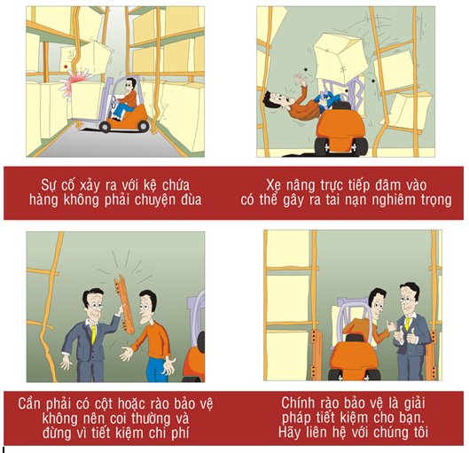 Vinarack mang đến nhiều thiết bị để gia tăng khả năng của các bộ phận bệ đỡ giá kê để chịu được các tác động từ xe nâng. Tuy nhiên, bất kể loại hình xây dựng và số lượng thiết bị chịu được hỏng hóc đươc sử dụng, Quý khách hàng được khuyến khích phát triển và duy trì một chương trình kiểm tra bảo trì hệ thống kệ chứa hàng một cách thường xuyên nhằm bảo đảm độ an toàn hệ thống kệ luôn ở mức an toàn cao nhất . Các bộ phận đã bị hư nên được dỡ bỏ ngay và đánh dấu cảnh báo không còn dùng được cho đến khi hư hỏng được sửa chữa hoặc là những chi tiết đó được thay thế mới.