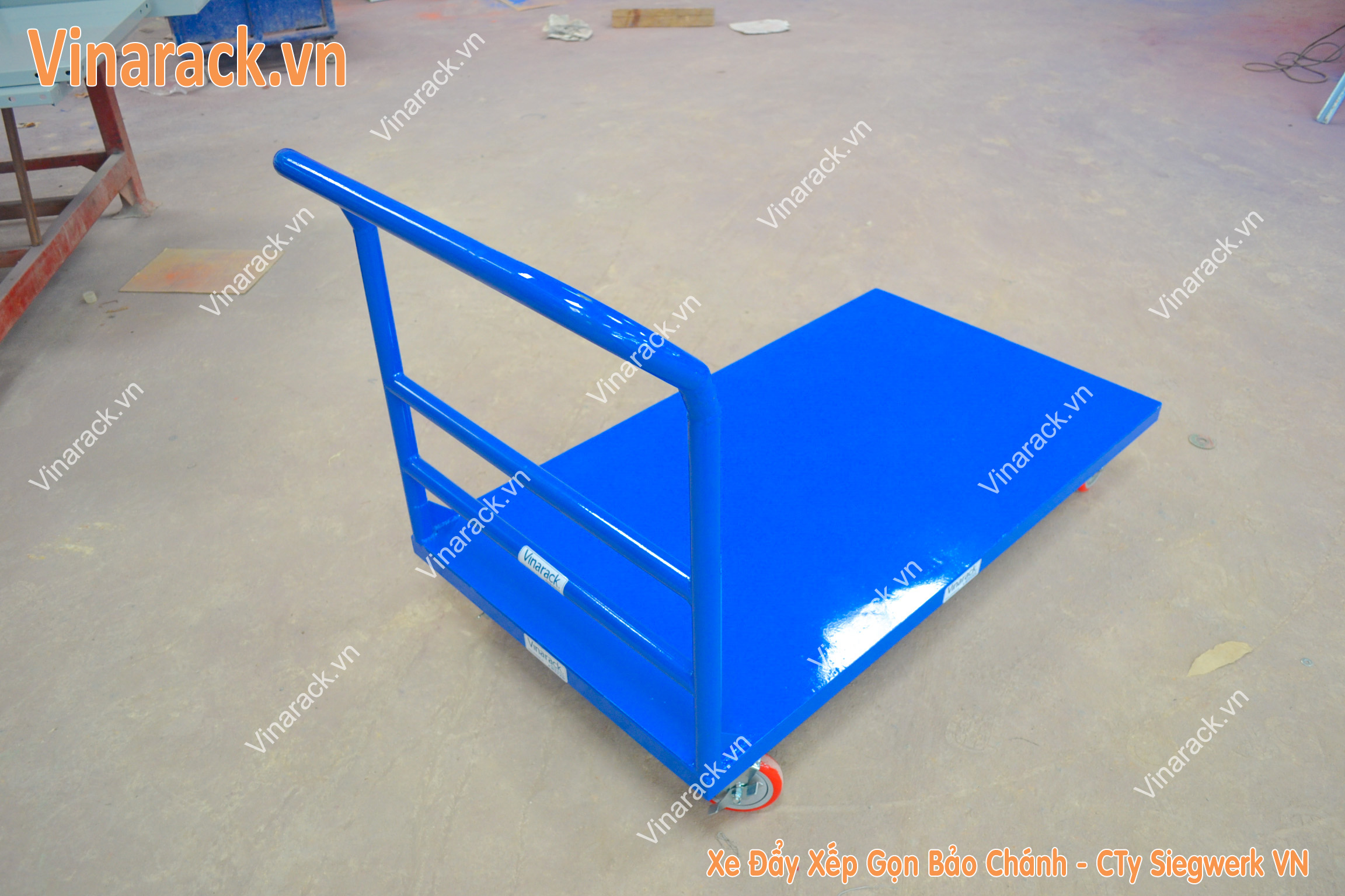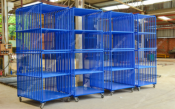 + Toàn bộ chi tiết xe đẩy hàng được Vinarack sơn tĩnh điện theo tiêu chuẩn công nghiệp.